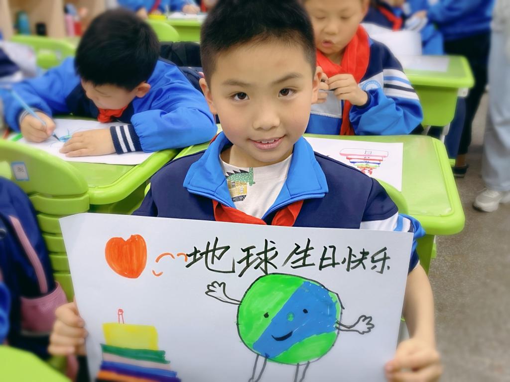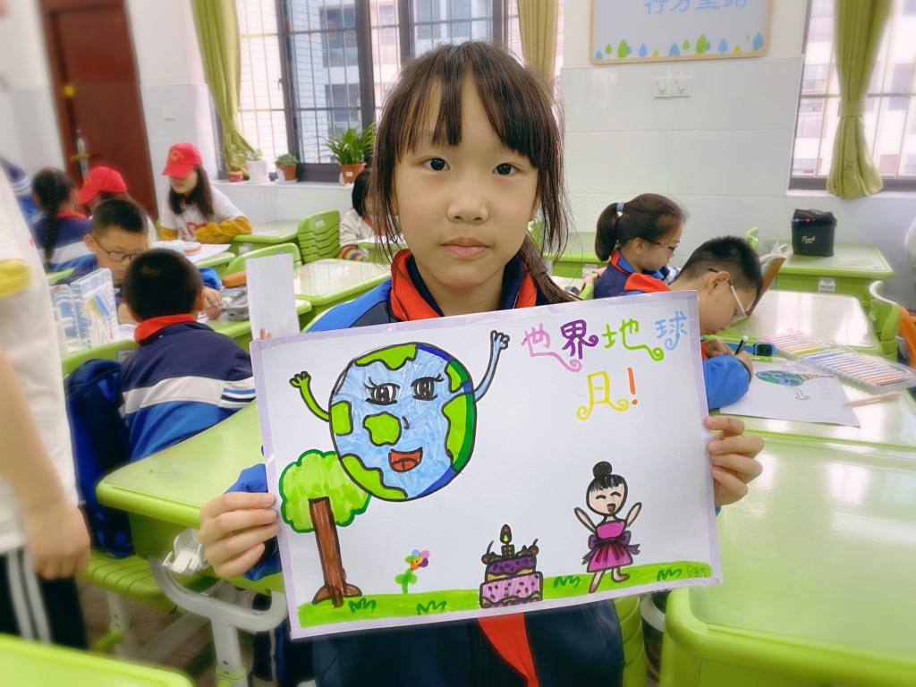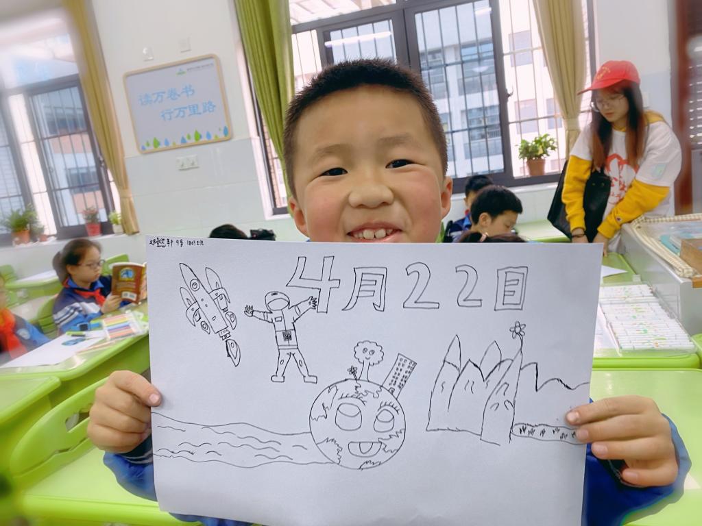 “姐姐,这是我画的地球,她有一张笑脸……”通过学习,小学生们带着对地球的新认识,开始在纸上画出心中地球的样子。他们拿出画笔,发挥想象,在纸上画出了各式各样的作品,他们用作品表达着对地球美好的祝愿。