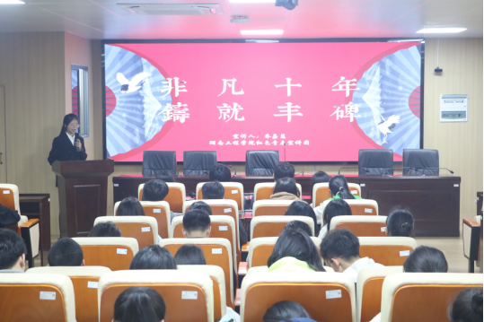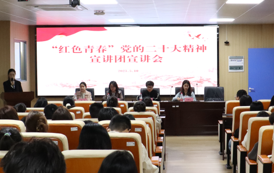 为深入学习宣传贯彻党的二十大精神,教育引导广大青年学子把思想和行动统一到党的二十大精神上来,5月10日晚,必威betway官网入口“红色青春”党的二十大精神宣讲团在BETWAY官方网站开展了专题宣讲。本次宣讲由必威betway官网入口校团委主办,BETWAY官方网站团总支承办。校团委书记刘琤、BETWAY官方网站党委书记严明、团委专干张潇文、BETWAY官方网站团总支书记黄玲以及100余名学生代表参加。