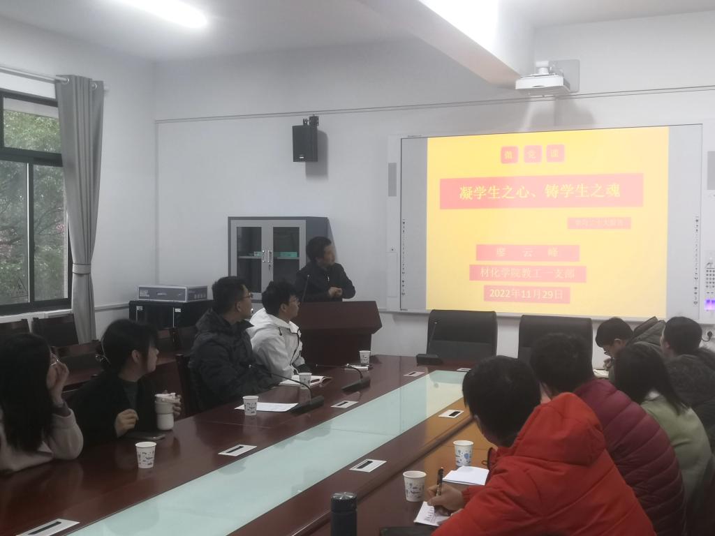 廖云峰以《凝学生之心、铸学生之魂》为题,表达了作为教育工作者,要做学生的榜样和楷模,用制度凝心铸魂,以实践凝心铸魂。组织委员王伟刚在微党课作品《以二十大精神为指引 认真践行高校教师职责》中,引导在场党员,作为科技工作者,要自觉以国家需求为教学科研导向,坚持自主创新,自觉将论文写在祖国大地上;作为教育工作者,要以“以身作则,言传身教”为初心,把思想政治工作贯穿教育教学全过程。宣传委员谭建平以《新时代党员责任和担当》为主题,从“深入理解共产党员的称号”“怎样履行好党员的责任”“党员不履行责任的危害”“共产党员要有责任担当”四个方面展开论述,他认为作为党员教师,要以身作则,以德育人,不惧困难,科研勇于创新。邓人杰分享了自己学习二十大精神的感悟,彭文红结合杨士莪院士先进事例分享感悟。